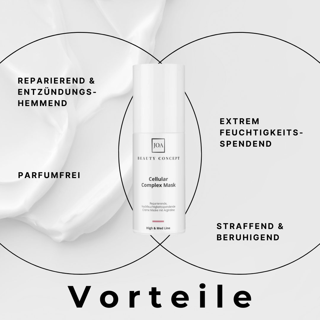 Cremige, reparierende entzündungshemmende, intensiv pflegende Creme-Maske mit Hyaluronsäure, Aloe Vera, Panthenol und Argireline (sanfte Alternative zu Botox). Sie strafft, beruhigt, repariert und verwöhnt die Haut mit extremer Feuchtigkeit. Wirkt hydratisierend, kühlend und beruhigt gestresste, irritierte sowie gerötete, entzündete Haut. Die Maske ist ganzjährig perfekt geeignet. Im Winter repariert sie die oft aufgrund von warmer Heizungsluft und kalten Außentemperaturen gestresste Haut. Im Sommer ist sie wegen dem hohen Aloe Vera-Gehalt perfekt nach einem Sonnenbad geeignet. Die Maske ist Parfum frei.