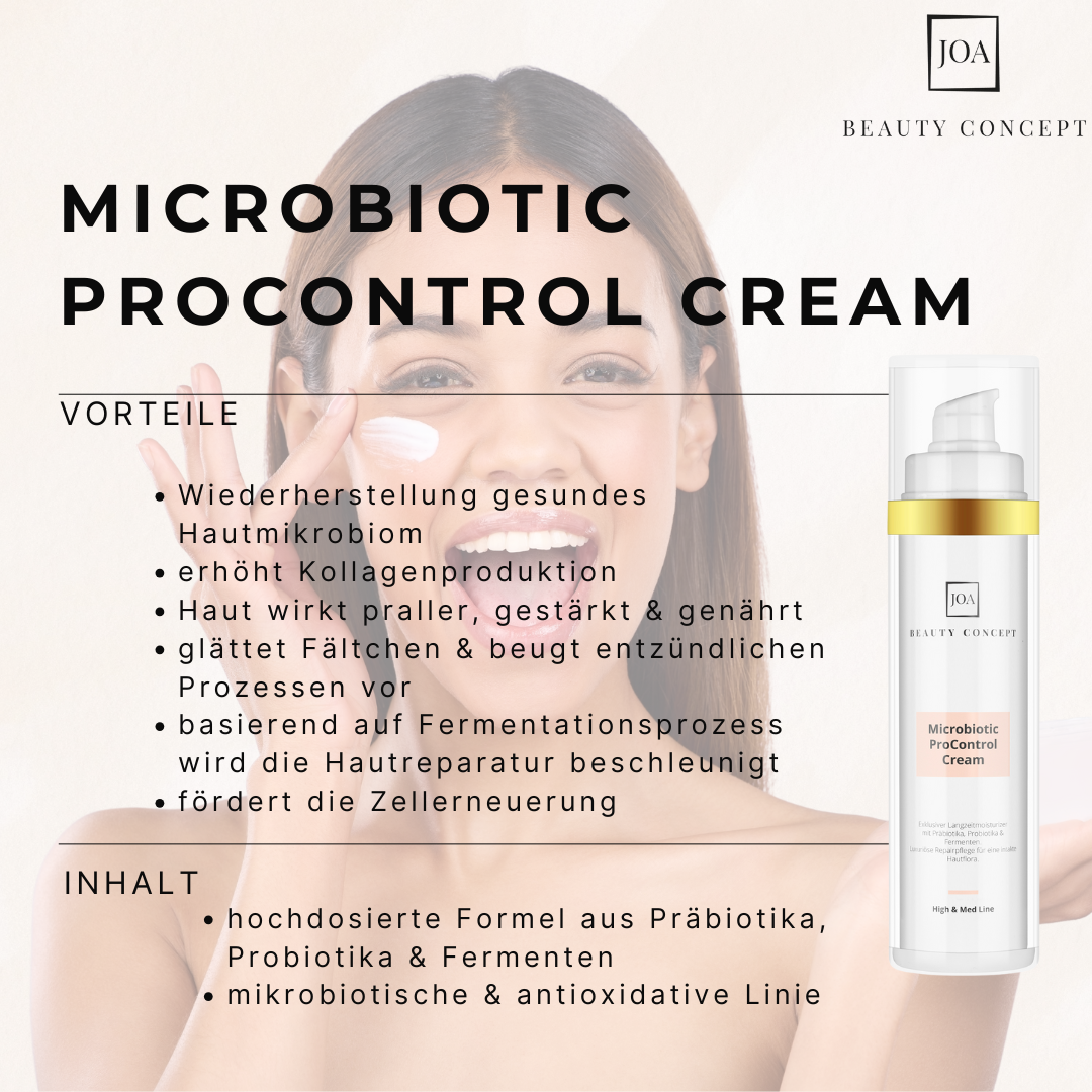 Der Booster für eine luxuriöse Repairpflege unterstützt bei der Wiederherstellung einer gesunden Hautmikrobioms sowie bei Problemhaut. Sie sorgt für eine intakte Hautflora. Als Allrounderpflege wirkt die Microbtiotic ProControl Cream stark reparierend und ausgleichend.